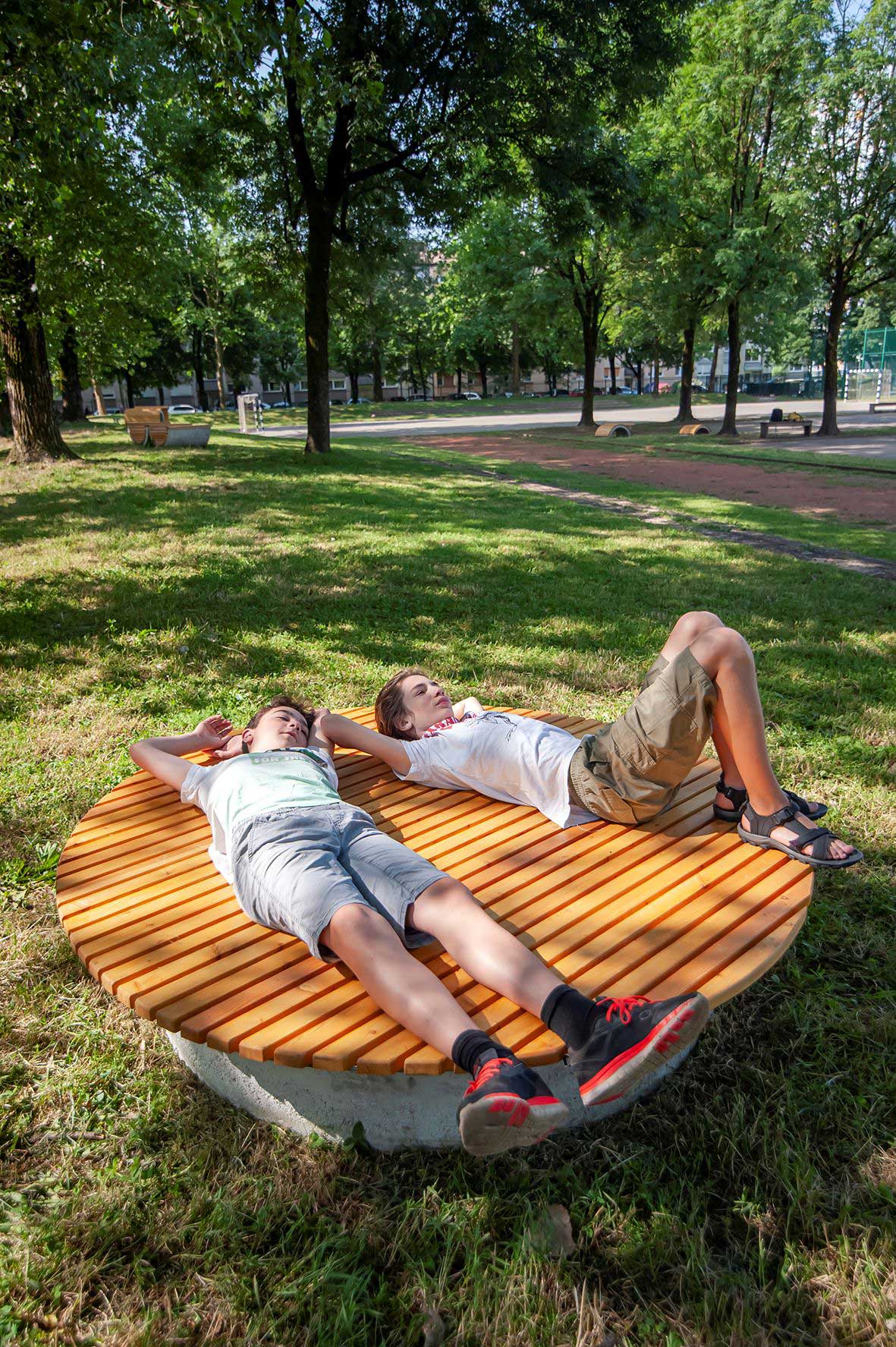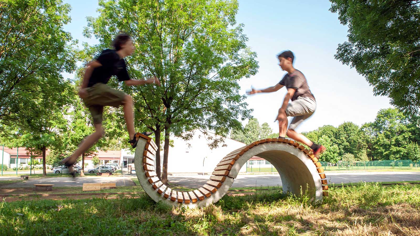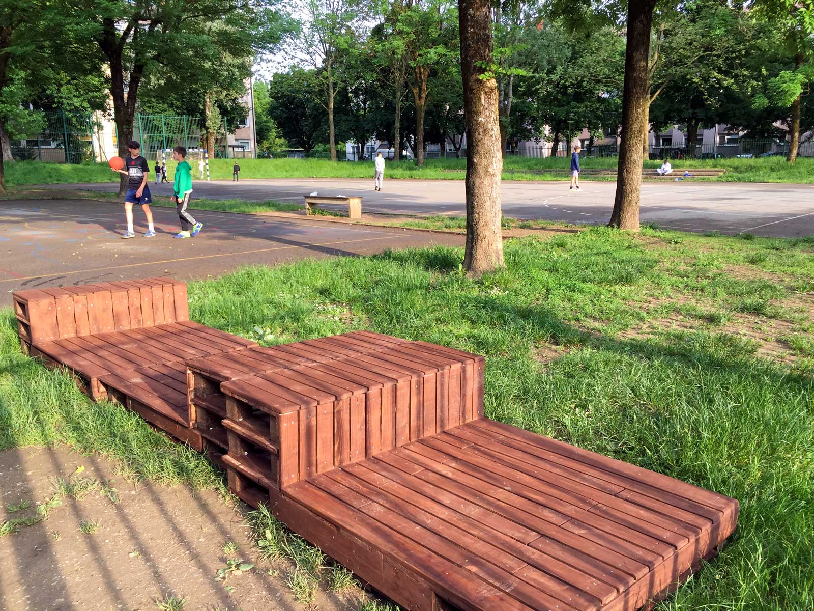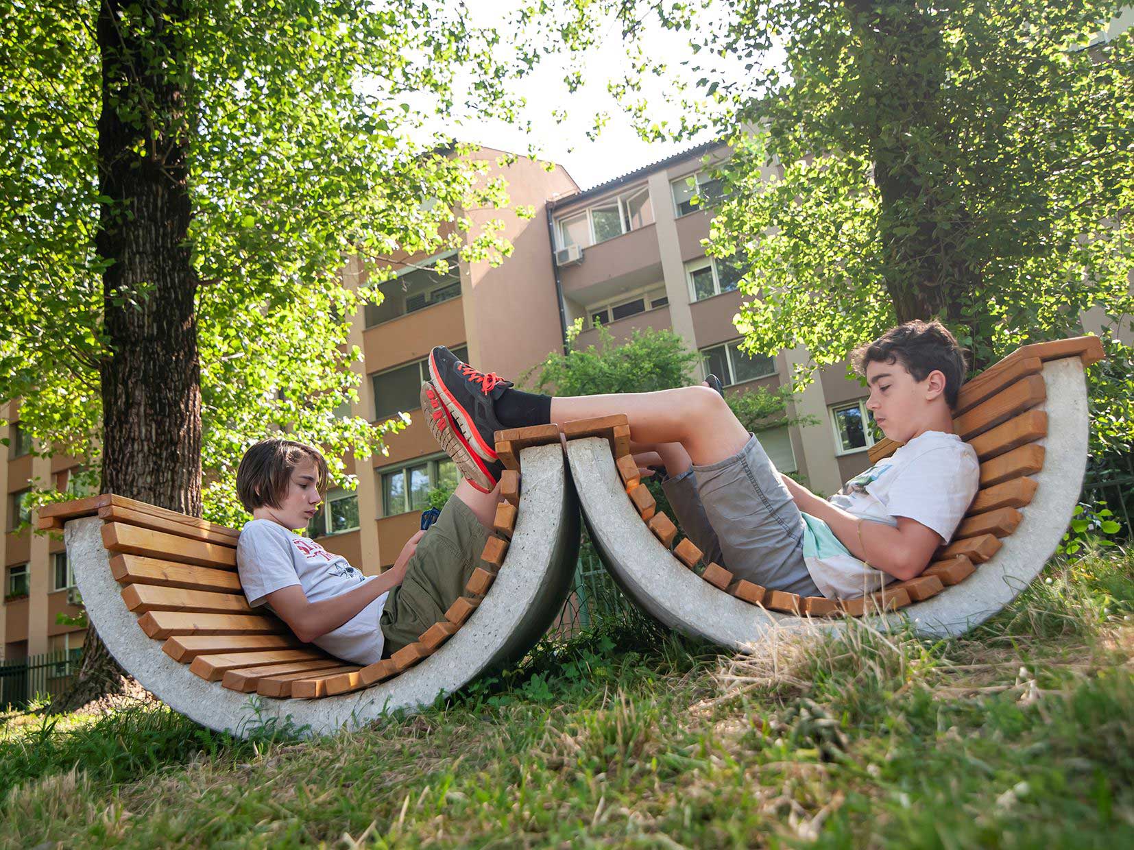 The third proposal involved the development of a new versatile element for sitting, playing, outdoor classes, and as a small stage. In addition to the multifunctionality, we took into account vandalism and used resistant materials and sturdy form. The students participated in the design process, contributing their creative ideas and preferences.